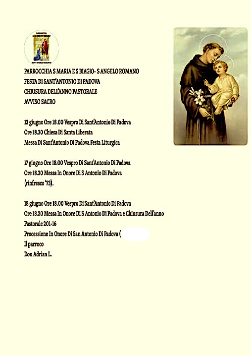 • 13 giugno – s Antonio di Padova