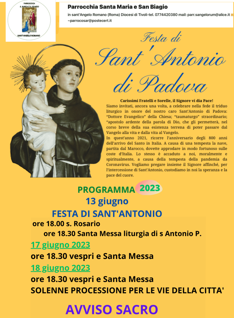 • 13 giugno – s Antonio di Padova