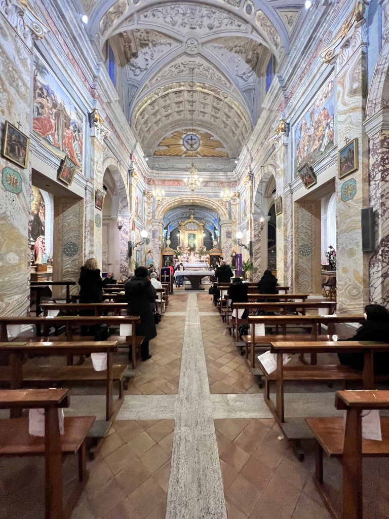 Al suo interno si trovano un coro ligneo del XVIII secolo ed una tavola attribuita ad Antoniazzo Romano.