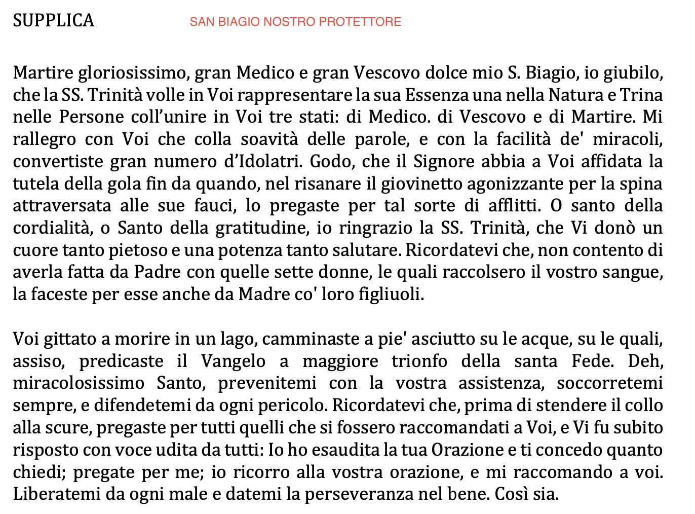 SUPPLICA A SAN BIAGIO